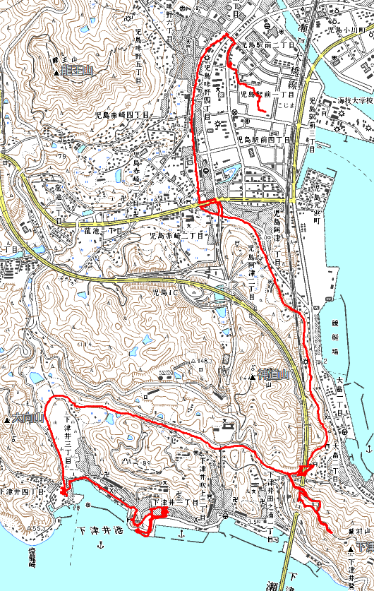 (児島駅)とありますが、下津井電鉄の旧駅のことでJR児島駅は反対側です。