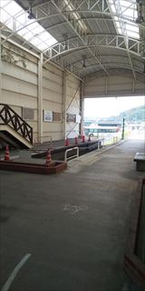 ここからバスに乗りました。混んでいました。