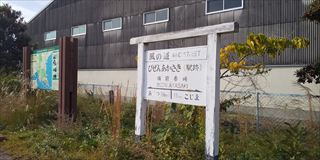 備前赤崎駅跡。古そうな感じが出ていますが、廃線後に作られた駅表示です
